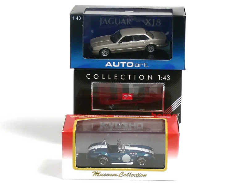 comprend : JAGUAR XJ8, FERRARI 348 TS & SHELBY COBRA 427 S/C - on y retrouve les marques : AUTO ART, HERPA, & KYOSHO