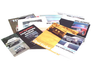 OPEL (ALLEMAGNE) Ensemble de 6 catalogues & 6 affiches automobiles