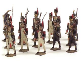 comprend : 8 grenadiers français & 6 fantassins autrichiens - quelques retouches - petits manques & parties déformées dont quelques-unes non d'origine