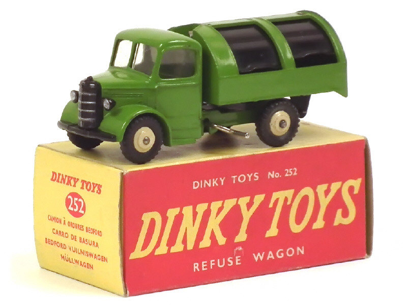 DINKY TOYS (GB) 252 BEDFORD Benne à ordures vert pistache, parties ouvrantes noires, jantes crème