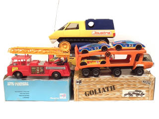 JOUSTRA (FRANCE) 0854 Camion grande échelle de pompiers rouge & orange