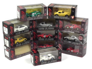 miniatures reproduisant les modèles : DINO 246 GTS, 250 SWB (3 exemplaires différents dont une édition limitée), 250 TR, 330 P4 (2 exemplaires différents), 348 SPYDER & 412 P (4 exemplaires différents)