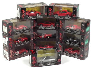 miniatures reproduisant les modèles : 250 SWB, 250 TR (2 exemplaires différents), 330 P4 (3 exemplaires différents), 348 GTB, 348 GTS, 348 SPYDER (2 exemplaires différents), 412 P & 456 GT