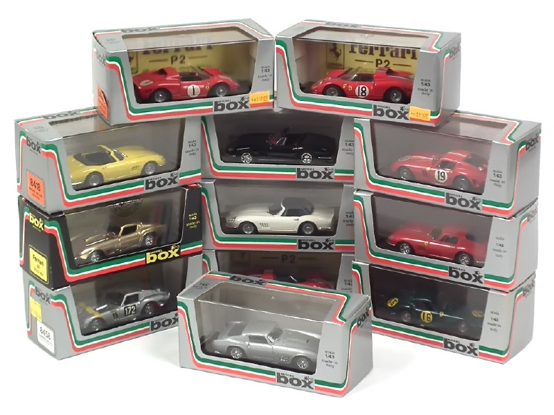 miniatures reproduisant les modèles : 365 P2 (3 exemplaires différents dont un en boîte 'c'), 250 GT (2 exemplaires différents), 250 GTO (3 exemplaires différents), 275 GTB (4 exemplaires différents)