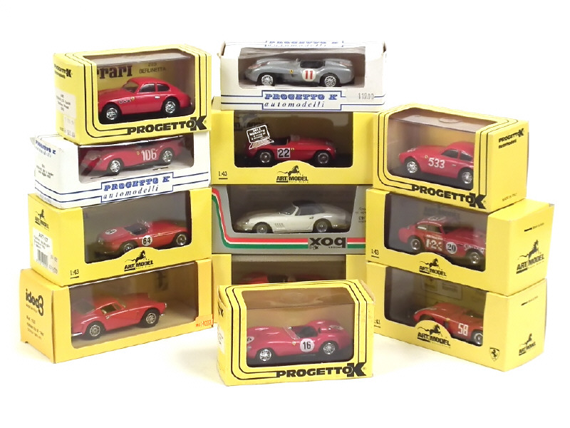 miniatures reproduisant notamment les modèles : 166 SPYDER, 375MM, 500 TRC, 250 GT, 275 GTB & 166 MM VIGNALLE - on y retrouve notamment les marques : PROJETTO K (boîte en état 'c'), MODEL BOX, IDEA 3 (boîte en état 'b') & ARTMODEL