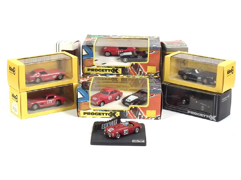 comprend notamment : 166 MM (édition limitée à 2000 exemplaires, avec diorama), 250 GT (3 exemplaires différents, avec importantes traces de métal fatigue), F50 (boîte en état 'C') & 250 (2 exemplaires différents) - on y retrouve les marques PROGETTO K, ART MODEL, IDEA 3 & BBURAGO