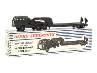 DINKY TOYS (FRANCE) 890 BERLIET Transport de char (version avec jantes du tracteur & de la remorque convexes) kaki