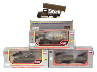 OMO (URSS) Ensemble de 4 ZIS camions militaires & une remorque kaki