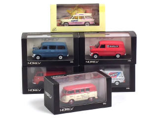 comprend : SIMCA MARLY 'ASPRO' (boîte légèrement décolorée), VOLKSWAGEN bus T1a 'AIR CHARTER LTD', FORD TAUNUS TRANSIT FK 1250, 'MARLEY', 'ORANGINA' & minibus 1969