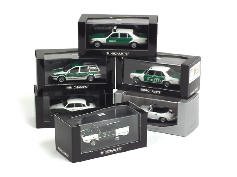 série limitées - comprend : VOLKSWAGEN GOLF VARIANT 'ZOLL', WARTBURG A 311 'POLIZEI', MERCEDES BENZ 420SEL 'POLIZEI', MERCEDES-BENZ 200 'POLIZEI', AMPHICAR 'POLIZEI' & PORSCHE 356 cabriolet 'POLIZEI'