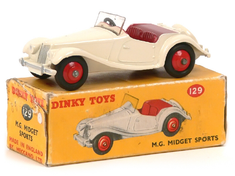 DINKY TOYS (GB) 129 MG MIDGET Sports ivoire, intérieur bordeaux, jantes rouges