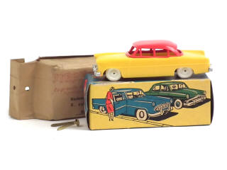 la mention 'PIERVAL' est gravée en lettres dorées sur le côté droit de la voiture - avec rarissime emballage postal d'origine daté du 13/12/60 - carrosserie très légèrement déformée - avec mention 'VERSAILLES' sur les rabats de boîte