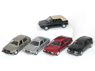 miniatures reproduisant les modèles : GOLF 1 cabriolet, CORRADO, GOLF 4 portes (un défaut de peinture d' origine sur le capot moteur), PASSAT GLS & SCIROCCO - on y retrouve les marques : DETAIL CARS, SCHABAK, CONRAD & SCHUCO