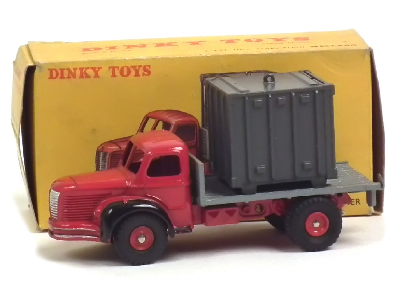 DINKY TOYS (FRANCE) 581 BERLIET Plateau avec container (version avec jantes concaves) rouge vif, plateau gris clair