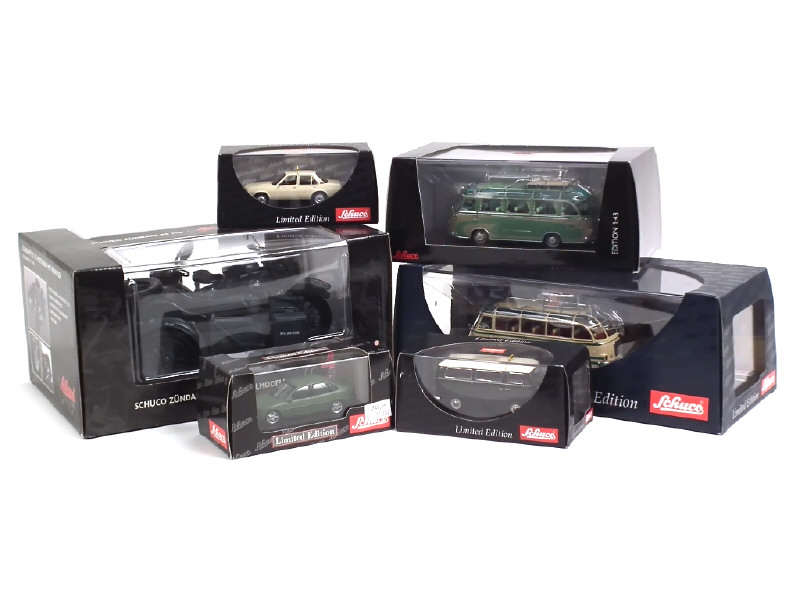 SCHUCO (ALLEMAGNE) Ensemble de 6 véhicules & une remorque