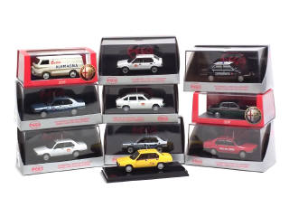 comprend : ROMEO 2 camionnette, 1900 TI, 33 (2 exemplaires différents) & 90 (5 exemplaires différents) - on y joint une LANCIA BETA