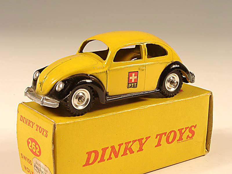 DINKY TOYS (GB) 262 VOLKSWAGEN Coccinelle 'PTT SUISSE' jaune & noir, jantes aluminium