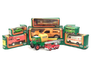 GAMA (ALLEMAGNE) Ensemble de 2 camionnettes, 2 voitures, 2 camions de pompiers, un camion semi-remorque & un engin agricole