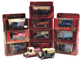 miniatures reproduisant les modèles : CROSSLEY, FODEN, FORD (8 exemplaires différents), MORRIS & RENAULT - on y retrouve notamment les publicités : CARNATION, GUINESS, HARROD'S, MOBILOIL & POSTES CANADA