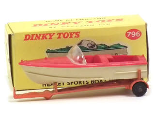 DINKY TOYS (GB) 796 HEALEY SPORTS BOAT avec remorque orange, crème & rouge