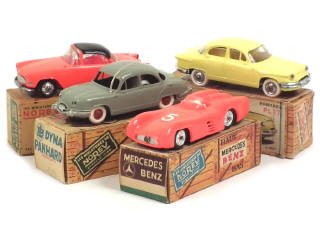 comprend : PANHARD PL 17, DYNA (une petite fêlure sur le cas de caisse), MERCEDES-BENZ de compétition & SIMCA PLEIN CIEL (manque antenne) - pellicules chromées plus ou moins incomplètes - carrosseries légèrement déformées