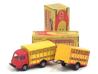 C.I.J. (FRANCE) 3/28 Remorque-bétaillère jaune d'or & rouge