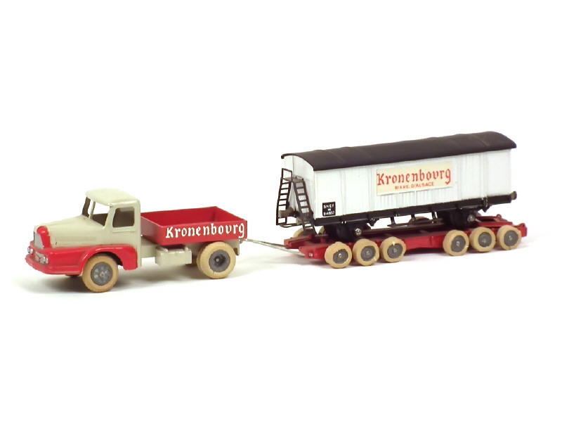 JRD (FRANCE) 123 UNIC avec remorque rail-route 'KRONENBOURG' blanc cassé & rouge