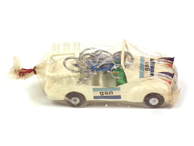 publicités 'GAN' - avec conducteur, 2 fanions (traces d'oxydation sur les supports) & 3 vélos - carrosserie légèrement encrassée - sous sachet d'origine