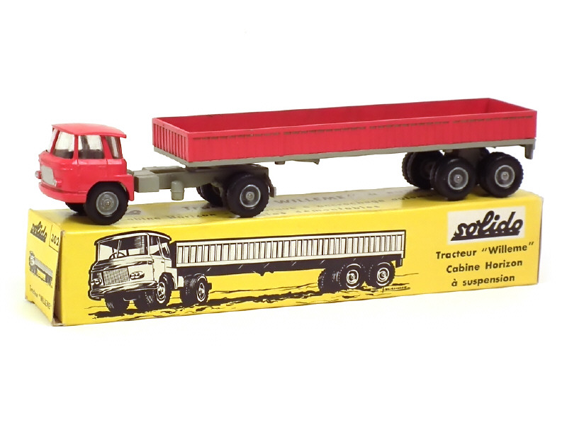 SOLIDO (FRANCE) 302 WILLEME Semi-remorque plateau à ridelles TITAN framboise & gris