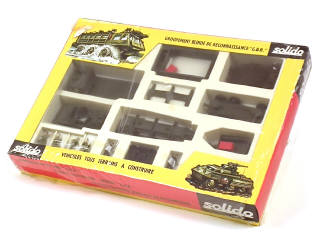 dimensions : 38 x 27 cm - contient : un BERLIET AUROCHS, un COMBAR-CAR M20, une remorque à 2 roues, 6 figurines, une notice & des accessoires - ensemble sous film plastique (déchiré)