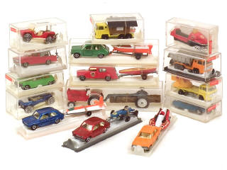 MAJORETTE (FRANCE) Ensemble de 16 véhicules, 3 bateaux, un avion & 6 remorques