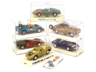 comprend : MERCEDES 230 SL SPORT, FERRARI 250 LE MANS (avec sachet d'accessoires), CAN-AM, 512 S, CHAPARRAL 2-F (avec sachet d'accessoires) & MONZA GT (avec sachet d'accessoires) - quelques jantes très légèrement fondues