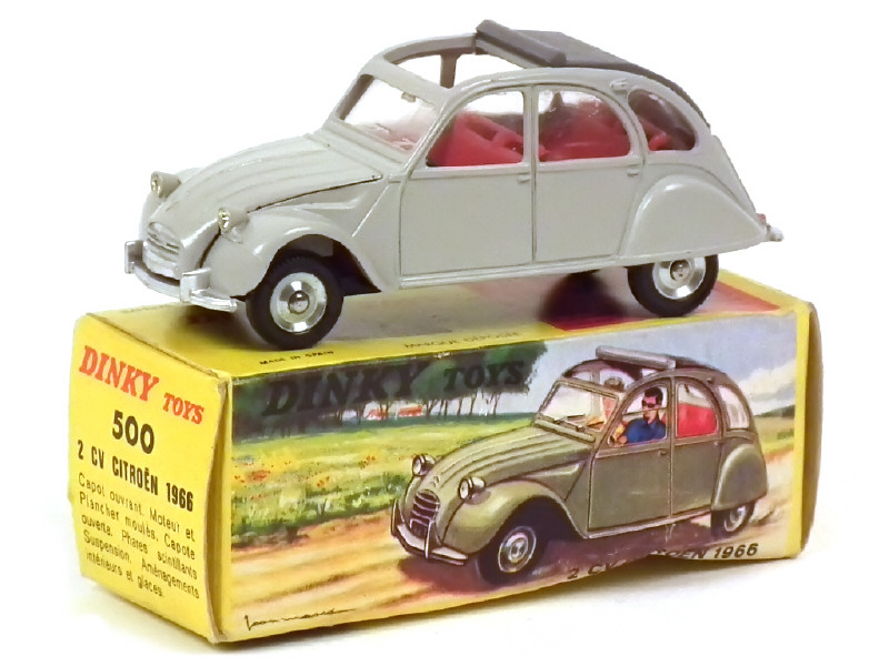 DINKY TOYS (FRANCE) 500 CITROËN 2CV Décapotée (made in SPAIN) gris clair, jantes chromées