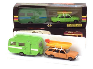 MERCURY (ITALIE) 408 FIAT 131 avec caravane, luge & skis sur galerie 2 tons de vert