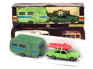 MERCURY (ITALIE) 409 LANCIA BETA Coupé avec caravane, luge & skis sur galerie 2 tons de vert