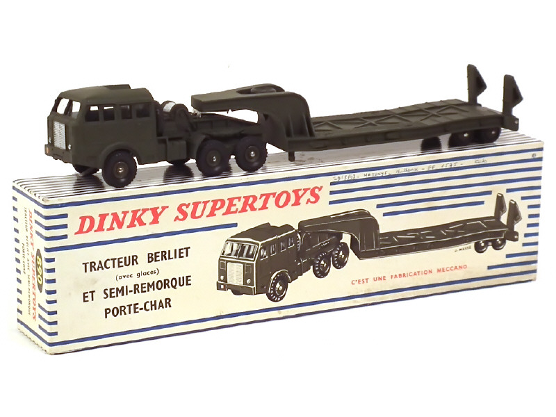 DINKY TOYS (FRANCE) 890 BERLIET Transport de char (version avec jantes du tracteur concaves & de la remorque convexes) kaki