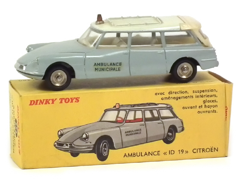 DINKY TOYS (FRANCE) 556 CITROËN ID 19 Break 'AMBULANCE MUNICIPALE' (version avec décalques décalés) gris, toit crème