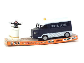 échelle 1/32ème - contient : CITROEN 1200 Kg, agent de circulation & ilot - sur socle de présentation illustré (déformé)