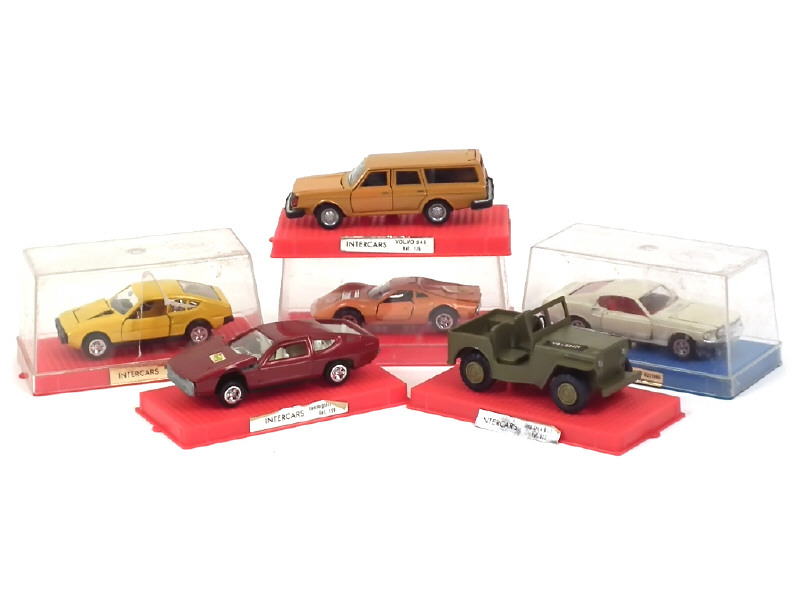 comprend : FERRARI DINO, LAMBORGHINI ESPADA (calandre & pare-chocs ternis), MATRA-SIMCA BAGHEERA (boîte en état 'c'), VOLVO 245 break (pare-chocs avant légèrement déformé), JEEP 'US ARMY & FORD MUSTANG - quelques autocollants décollés