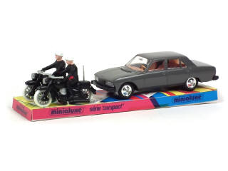échelle 1/32ème - série 'COMPACT' - contient : PEUGEOT 604 & 2 motards de la garde républicaine - une petite déchirure sur le couvercle de boîte