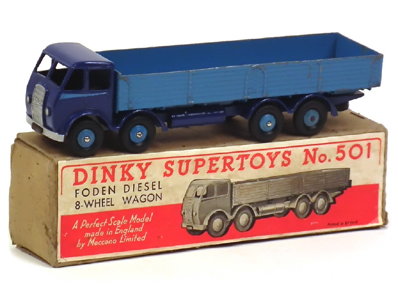 DINKY TOYS (GB) 501 FODEN Plateau à ridelles 2 tons de bleu, filets bleus