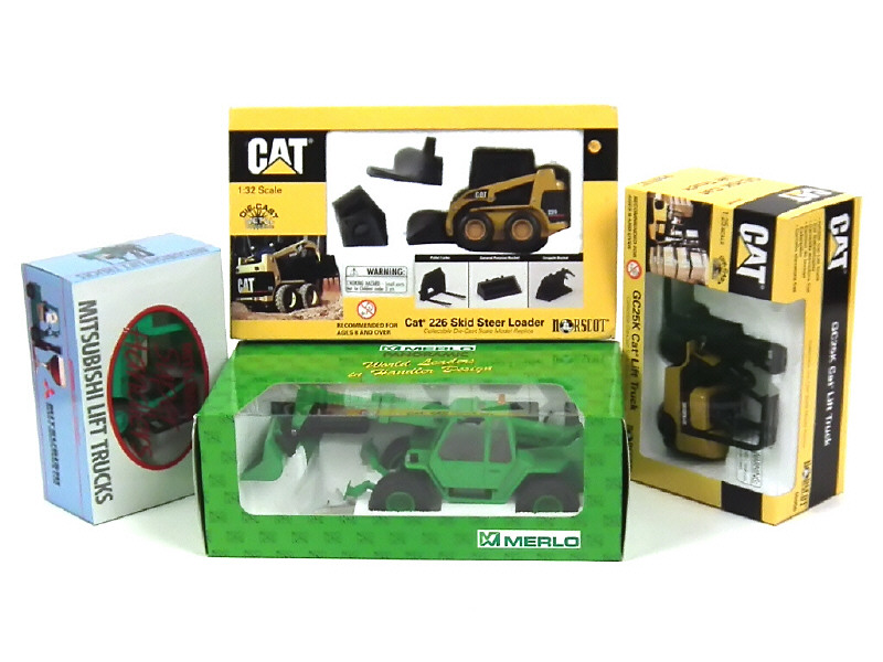 comprend : MERLO Panoramic télescopique (RARE avec boîte spécifique), MITSUBISHI 25 & CATERPILLAR GC25K - on y joint une mini-chargeuse CATERPILLAR 226 - on y retrouve notamment la marque NORSCOT