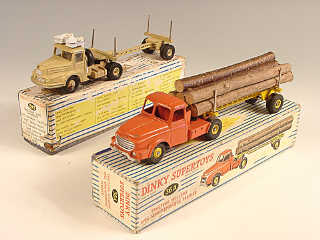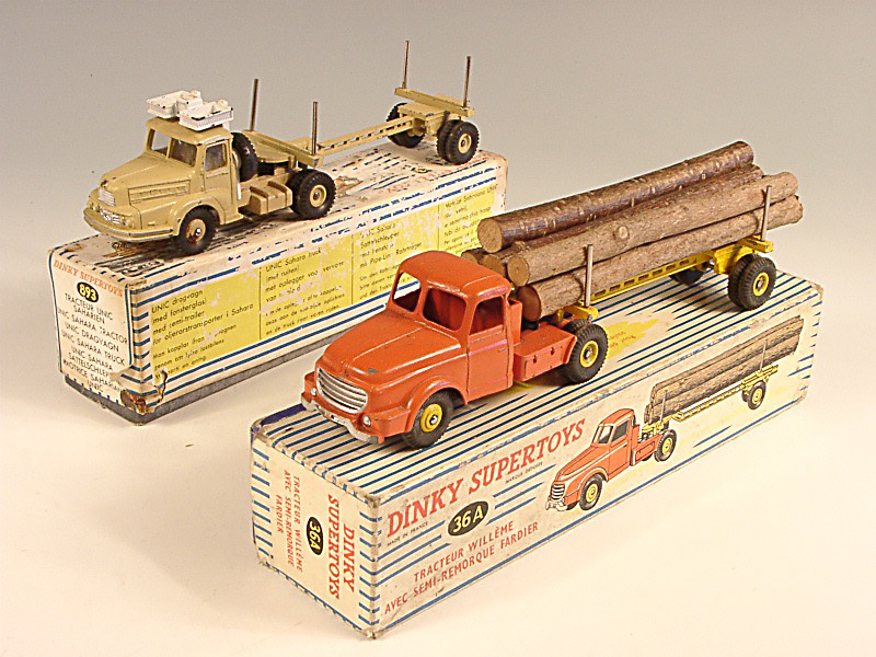 DINKY TOYS (FRANCE) 893 UNIC Saharien transport de pipe-lines (version avec jantes convexes & remorque ajourée) sable & blanc