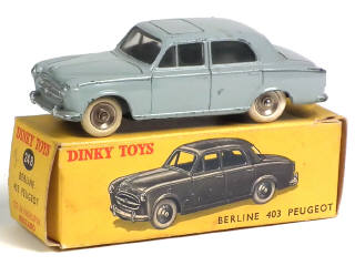 DINKY TOYS (FRANCE) 521 PEUGEOT 403 (version avec vitres & jantes concaves) gris clair