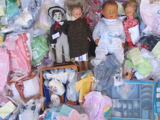 Bon état général (lot important à prendre en l'état) - On y retrouve : 2 BELLA, CHARLOT (porcelaine années 80) et une DIVERS - 2 dînettes et 61 lots de vêtements (griffés, anciens et contemporains)