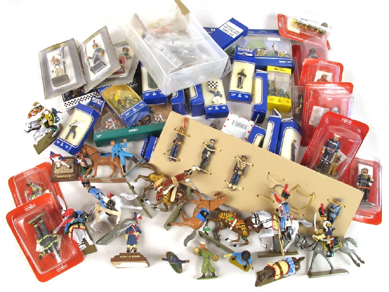 Bon état général - Possibilités de manques et accidents (lot important à prendre en l'état) - 20 boîtes et 3 coffrets cycliste NOREV au 1/43ème - 20 figurines DEL PRADO - 3 EUXOS PRINT- Gendarmes BONUX & MINIALUXE - on y joint quelques STARLUX plastiques et métal et 4 soldats en white metal