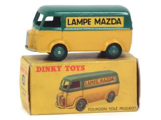 DINKY TOYS (FRANCE) 25B PEUGEOT D3A 'LAMPE MAZDA' vert & jaune