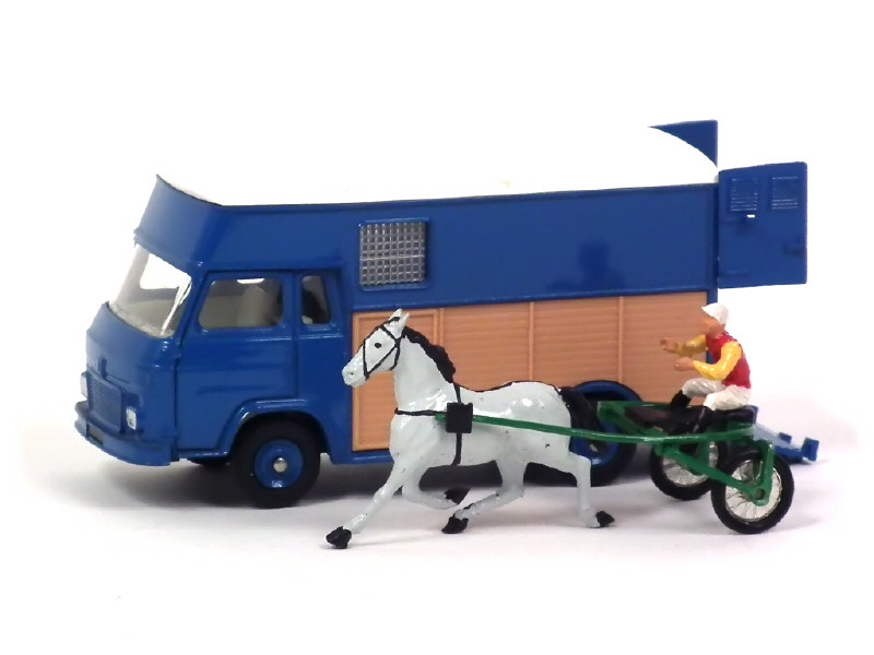 DINKY TOYS (FRANCE) 571 SAVIEM Goélette transport de chevaux bleu, bois, toit blanc