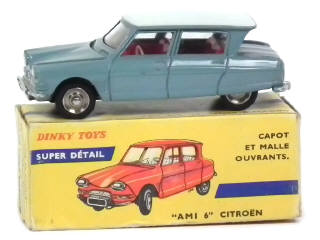 DINKY TOYS (FRANCE) 557 CITROËN AMI 6 (version avec roue de secours sous le capot) gris bleu, toit blanc