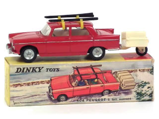 DINKY TOYS (FRANCE) 536 PEUGEOT 404 avec remorque monoroue (skis noirs) rouge